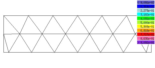| Remeshing criteria | Default mesh size (40) for regions with no damage. Inside damaged regions linear interpolation of mesh density, here taken as constant (10). Initial mesh created with mesh size 100. |